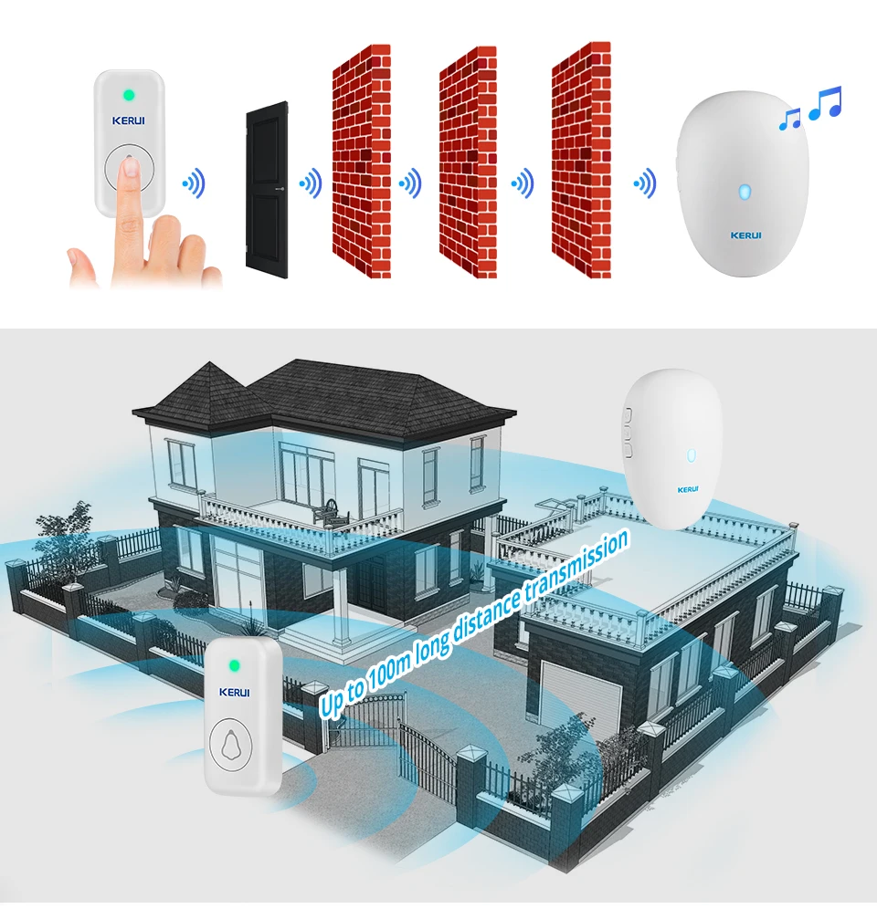 Відстані 80 метрів достатньо, щоб покрити всі двері і вікна вашого будинку. Кожен бездротової приймач дверного дзвінка може бути з'єднаний з 20 магнітними датчиками сигналізації, і кожен датчик може додати необмежену кількість приймачів. Не тільки дверний дзвінок, але і може використовуватися в якості сигналу тривоги.