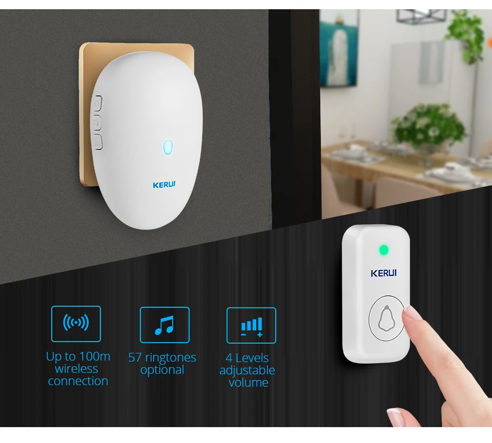 Розумний дверний дзвінок KERUI для домашньої безпеки, вітальний бездротовий дверний дзвінок 57 мелодій, дистанція до 80 м,