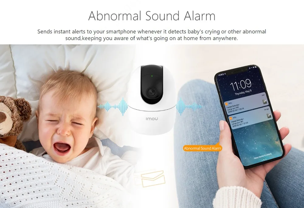 Відправляє миттєві оповіщення на ваш смартфон, коли він виявляє плач дитини або інші ненормальні звуки, дозволяючи вам знати, що відбувається вдома з будь-якого місця.