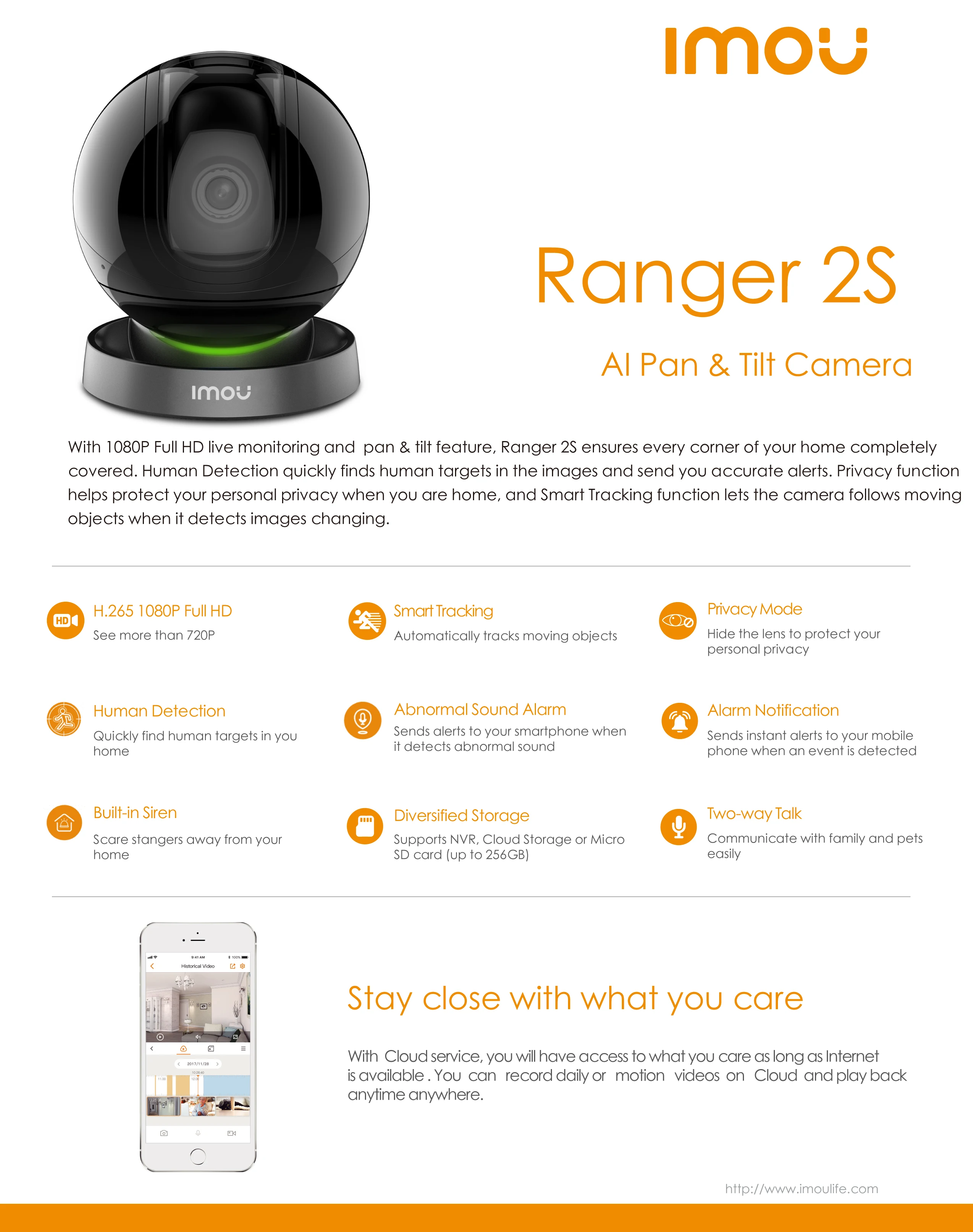 Ємність sd-карти до 256 ГБ і використовується для дуже тривалого часу. З NVR ranger 2 може стати замкнутим телевізійним каналом (CCTV), який може легко і ефективно контролювати і управляти всіма камерами відеоспостереження. Крім того, всі камери Imou, включаючи ranger 2, підтримують Хмарне сховище. Хмарна система зберігання дуже безпечна, проста і ефективна.