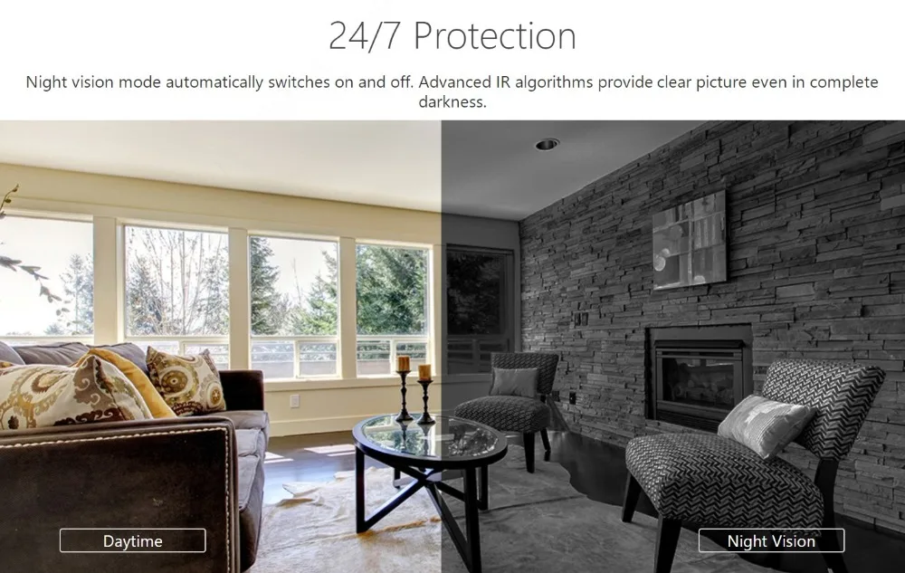 Режим нічного бачення автоматично включається і вимикається. Передові ІЧ-алгоритми забезпечують чітке зображення навіть в повній темряві.