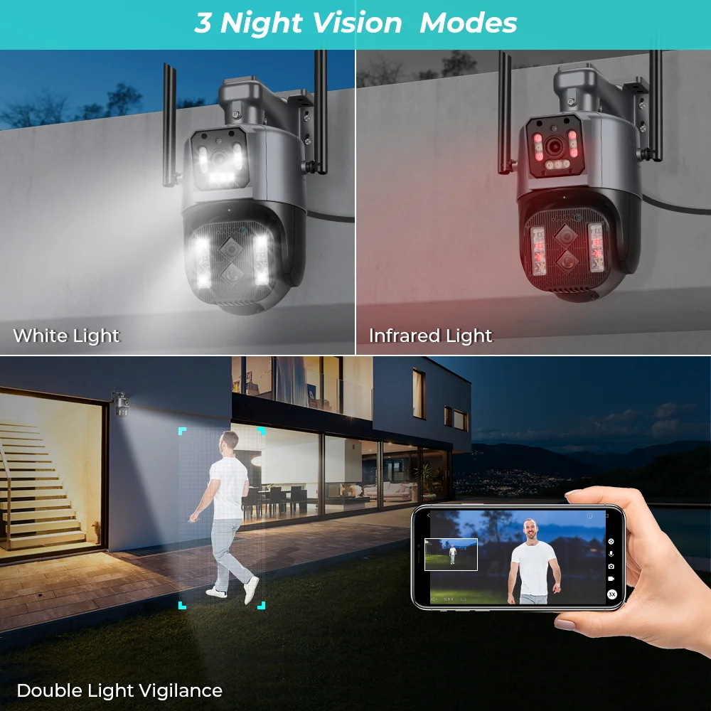 підтримує повноколірний режим, інфрачервоний режим і режим сповіщення з подвійним освітленням (інфрачервоне нічне бачення показується, коли об'єкт не рухається, і вмикається біле світло для перемикання в повноколірний режим після виявлення руху).
