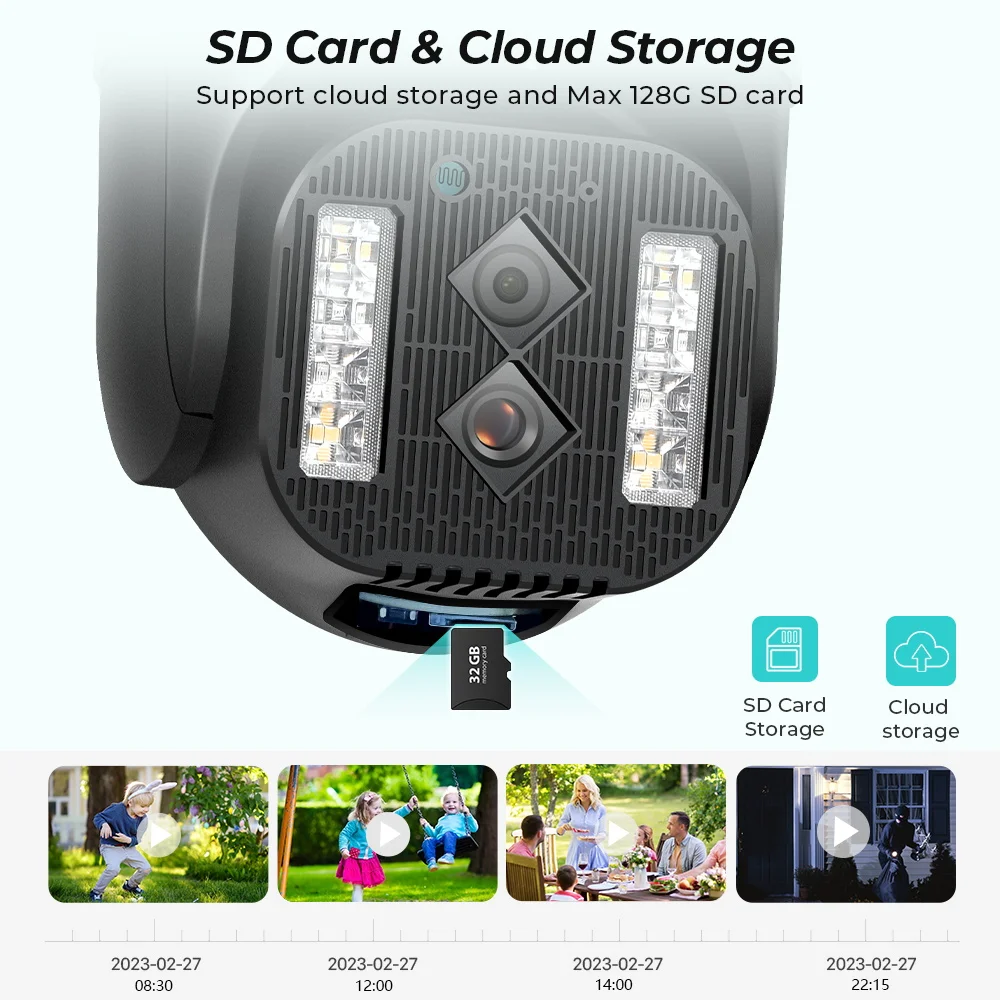 Хмарне сховище за перший місяць і SD-карта Max 128G Запис, безпека даних стабільніша.