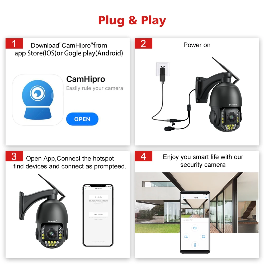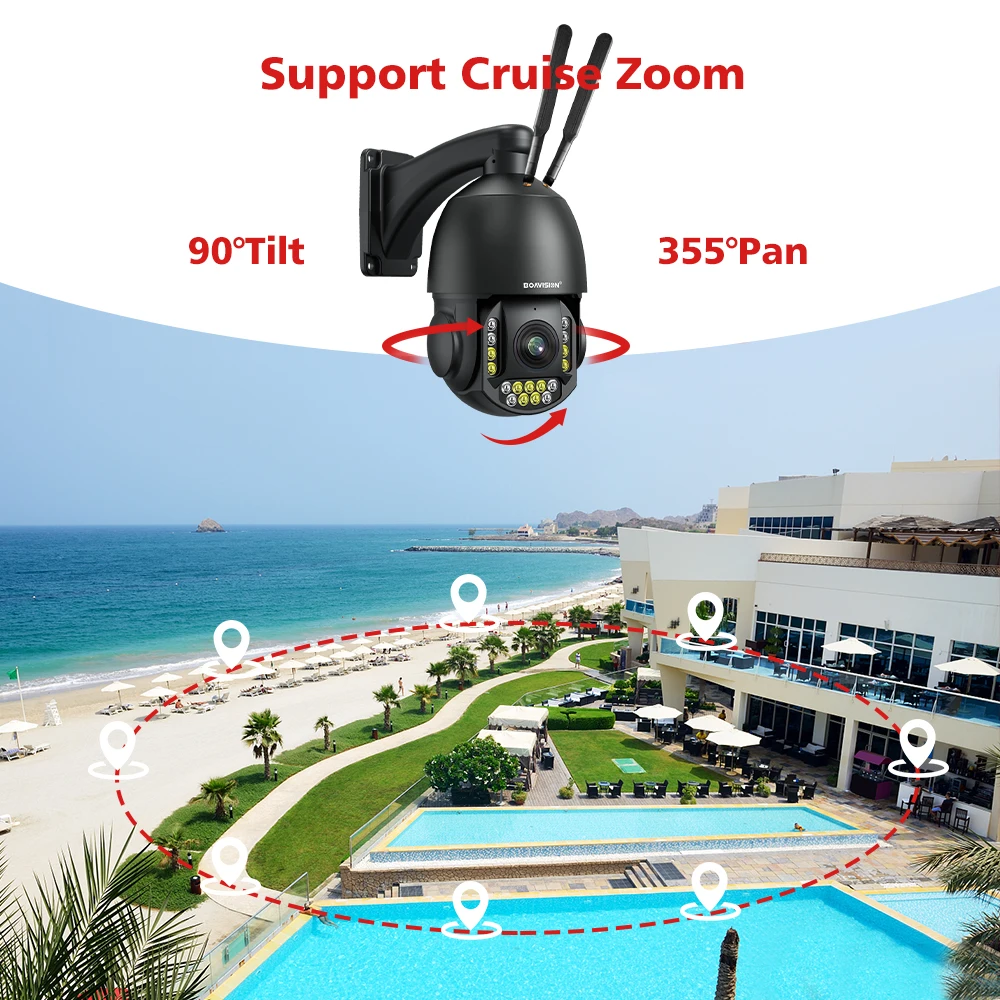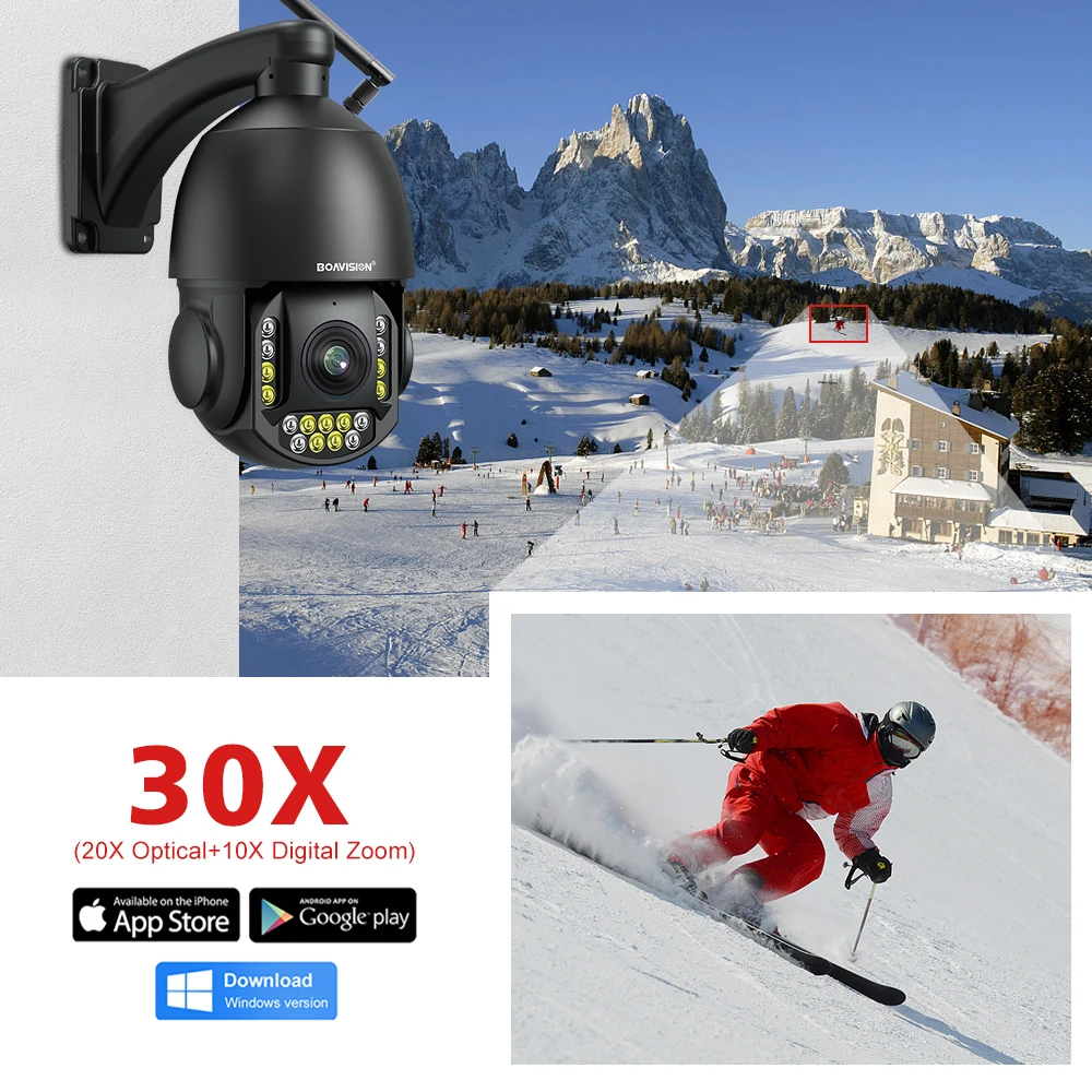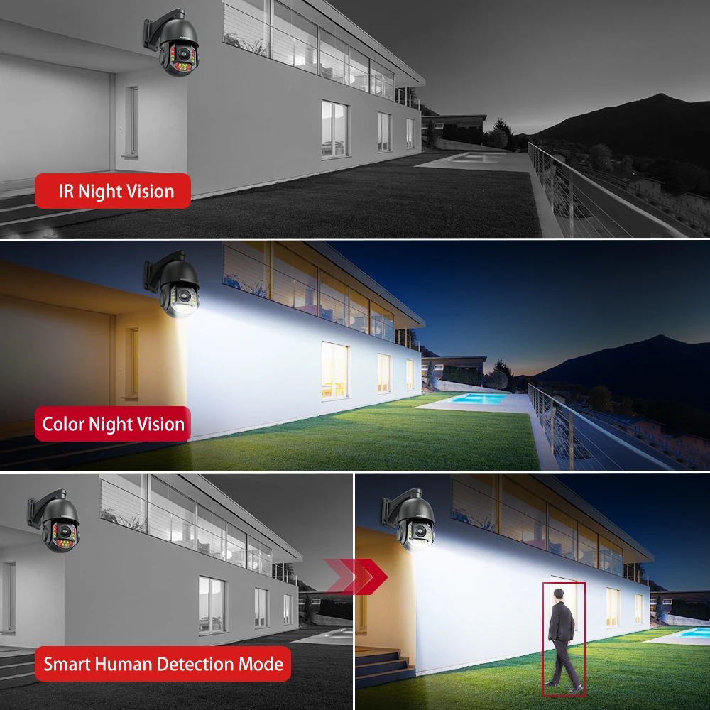 Камера автоматично регулює поворот/нахил і масштабування, захоплюючи чіткі цілі моніторингу й автоматично відстежуючи людини, що рухається, а також надсилаючи сповіщення електронною поштою або повідомленнями на ваш телефон.