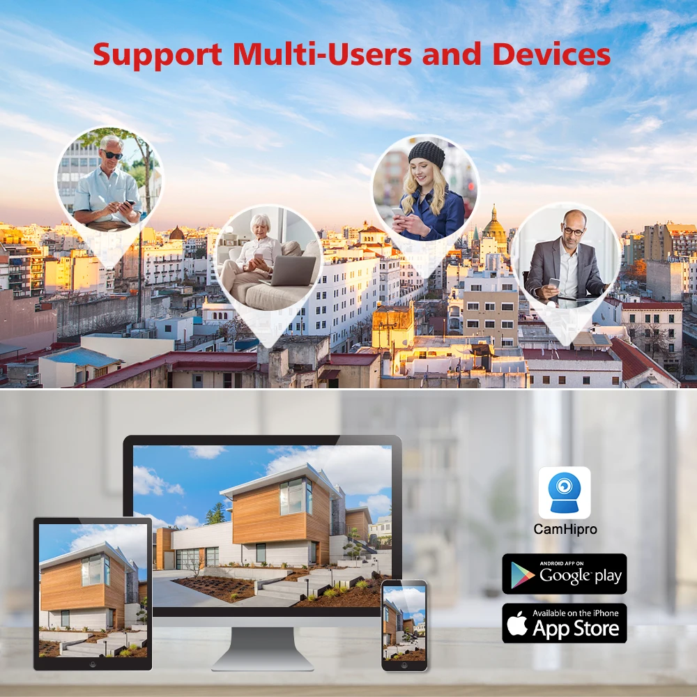 Надайте застосунок Android і IOS (CamHipro) і професійне клієнтське програмне забезпечення CMS для ПК.