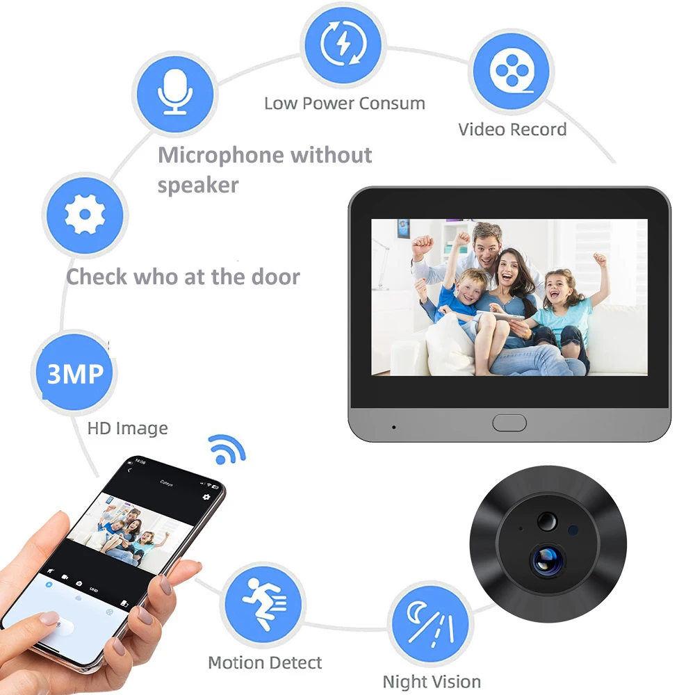 Дверне вічко iCam365 WiFi 3MP з камерою спостереження 4,3 дюйма